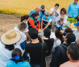 La máxima autoridad en Guayas también se trasladó hasta el cantón Samborondón, donde la Prefectura Ciudadana avanza con obras integrales por administración directa en cuatro tramos de la vía Zapán–Las Margaritas. Esta labor incluye la construcción de dos muros carrozables de entre 1 y 2 metros de altura, la reconformación y elevación de la calzada, y la aplicación de doble riego asfáltico en más de 10 km de vía. El beneficio llega a más de 12 recintos que registran alrededor de 3.000 hectáreas de arroz.