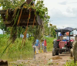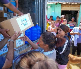 Mientras se avanza en las obras de infraestructura, también se brinda ayuda humanitaria. La tarde del martes, 24 de febrero, 230 familias de La Magdalena recibieron kits de alimentos y bidones de agua potable para que puedan enfrentar las secuelas de los altos niveles de agua que aún mantienen anegadas sus viviendas.