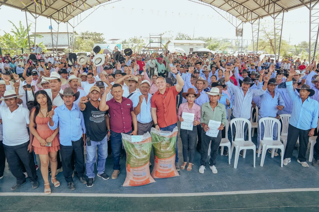 Viceprefecto Carlos Serrano estuvo al frente de la entrega gratuita de semillas certificadas de arroz y bioestimulantes a productores de Junquillal