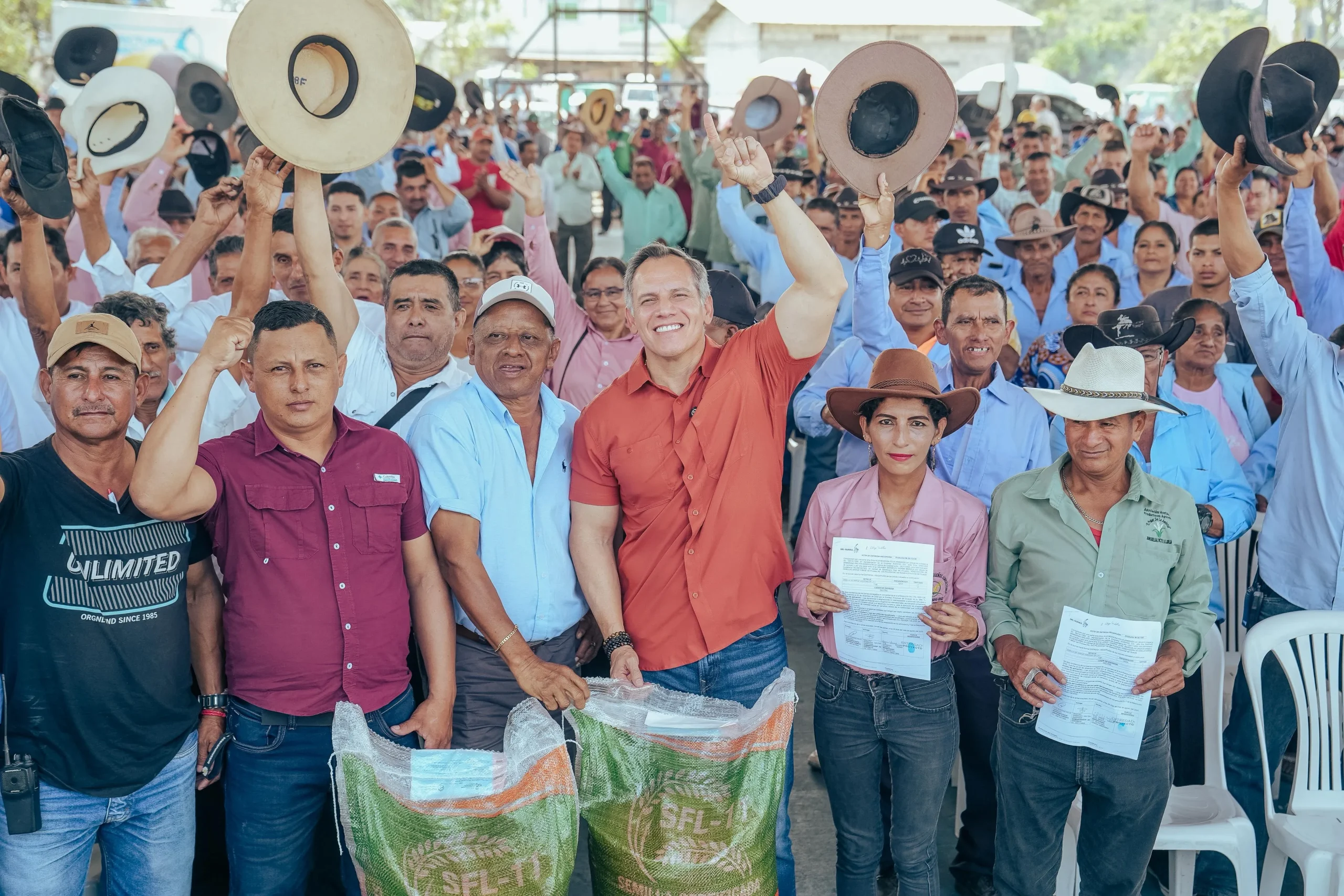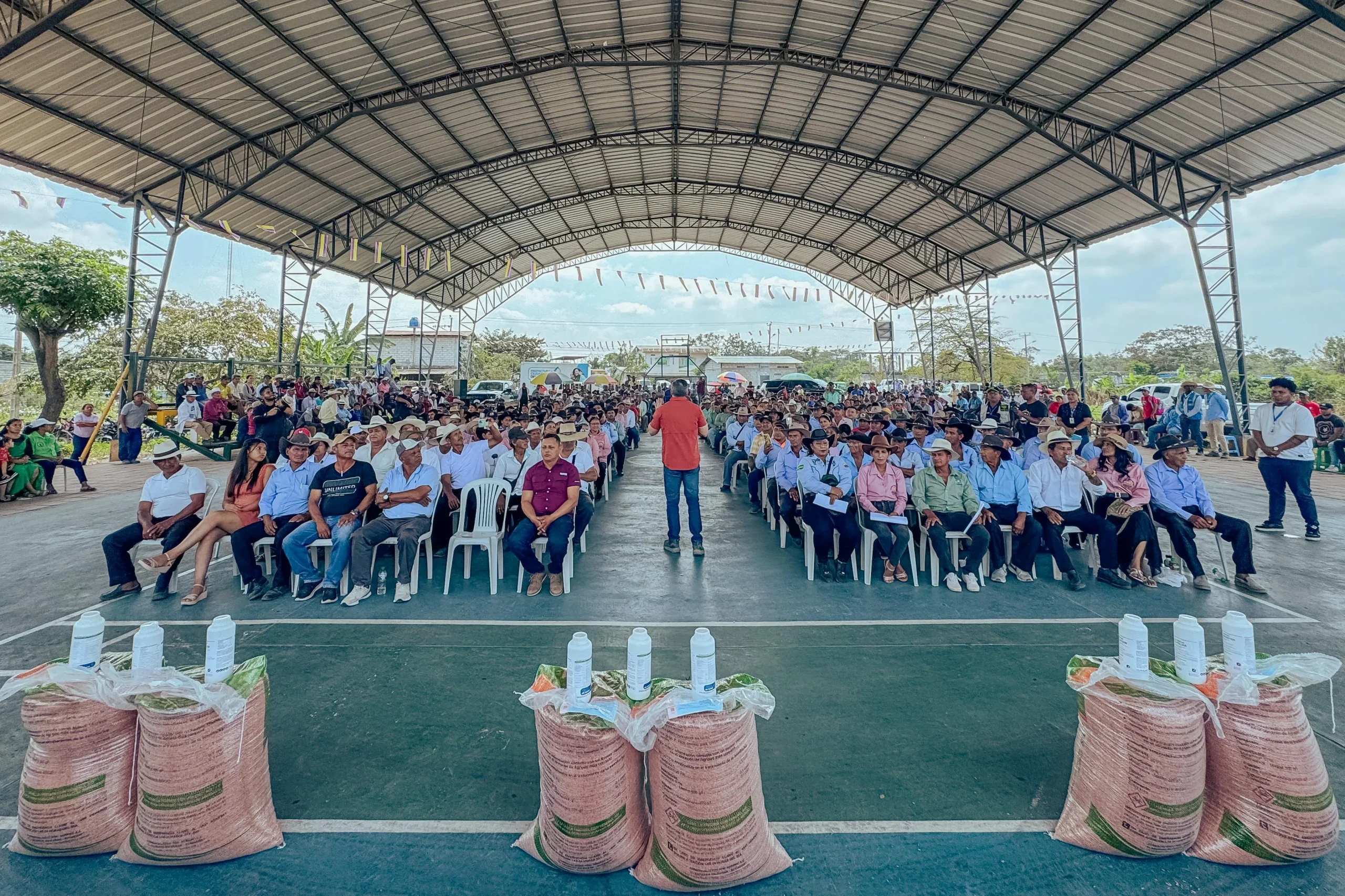 El viceprefecto Carlos Serrano acompañó a más de 500 pequeños productores, organizados en 16 agrupaciones, que fueron beneficiarios directos del programa que busca fortalecer la producción arrocera y reactivar la economía rural.