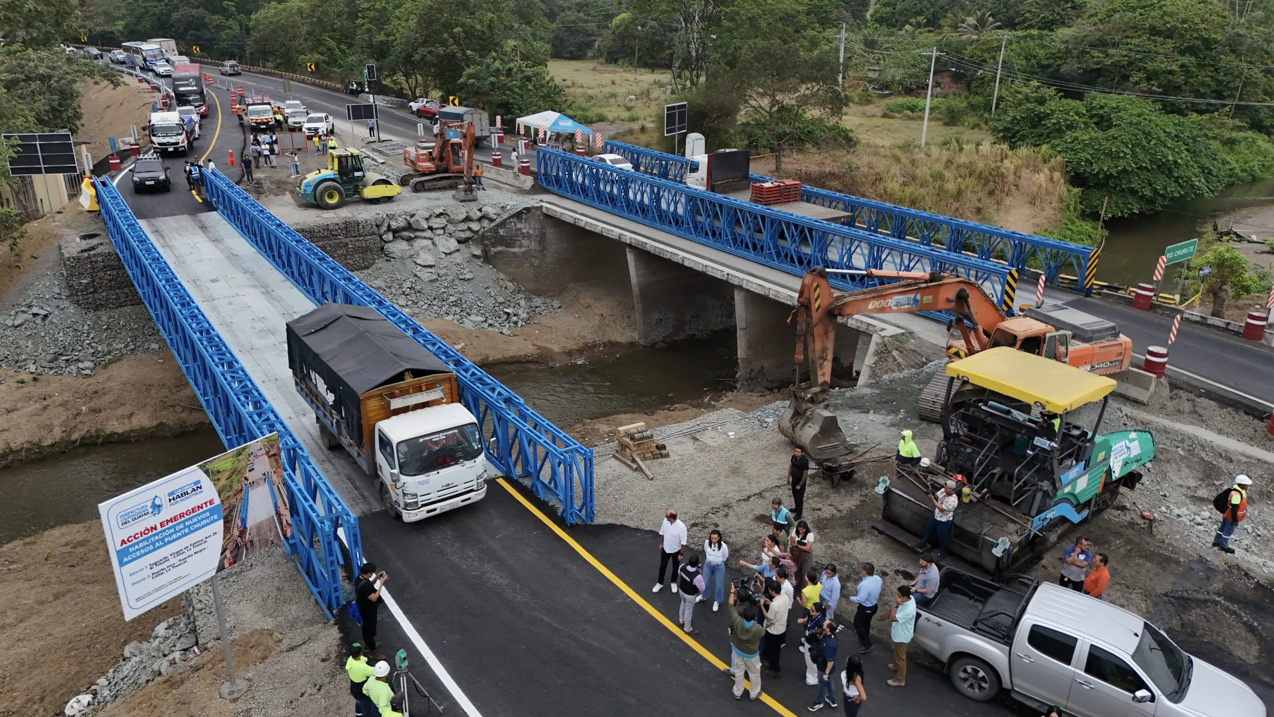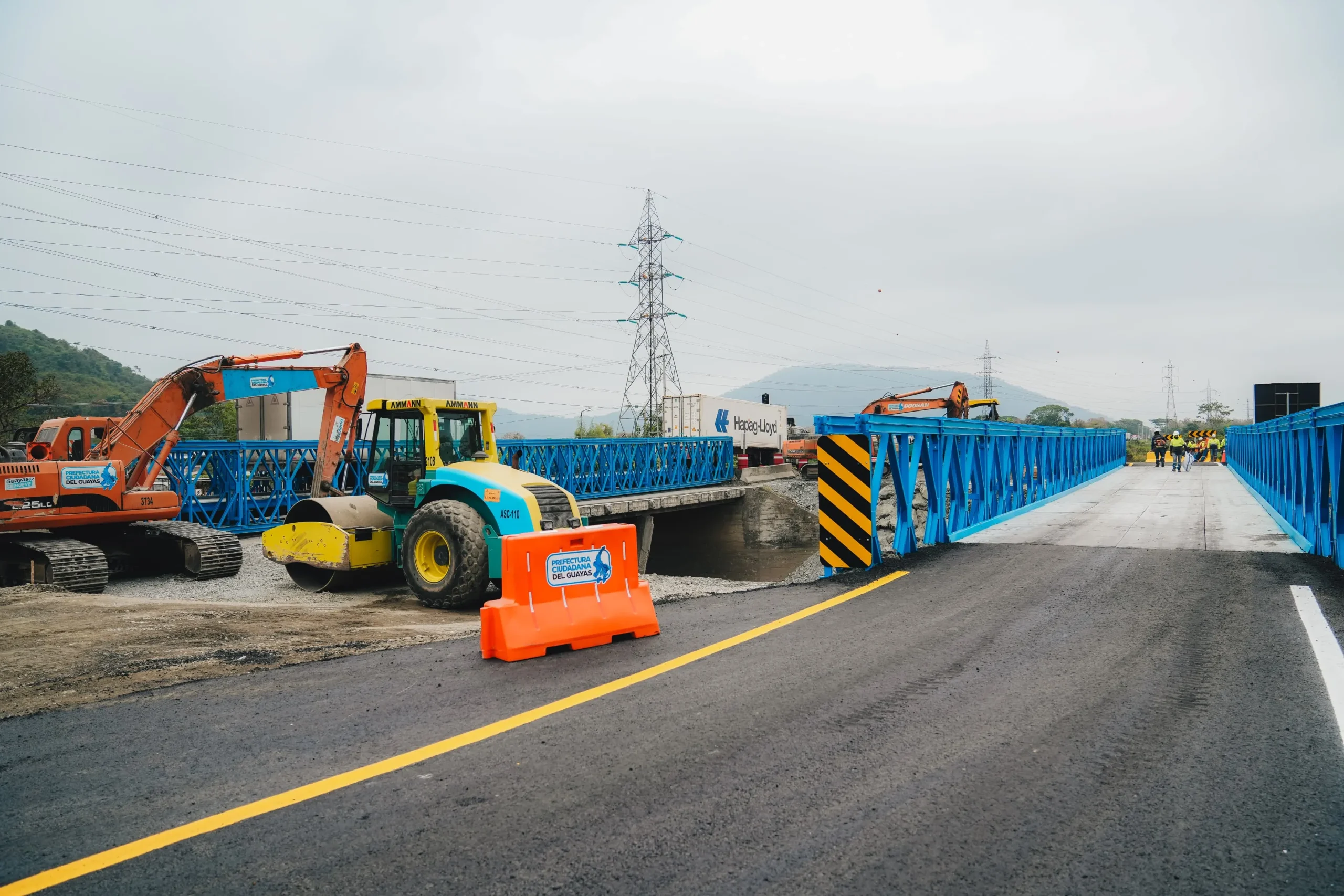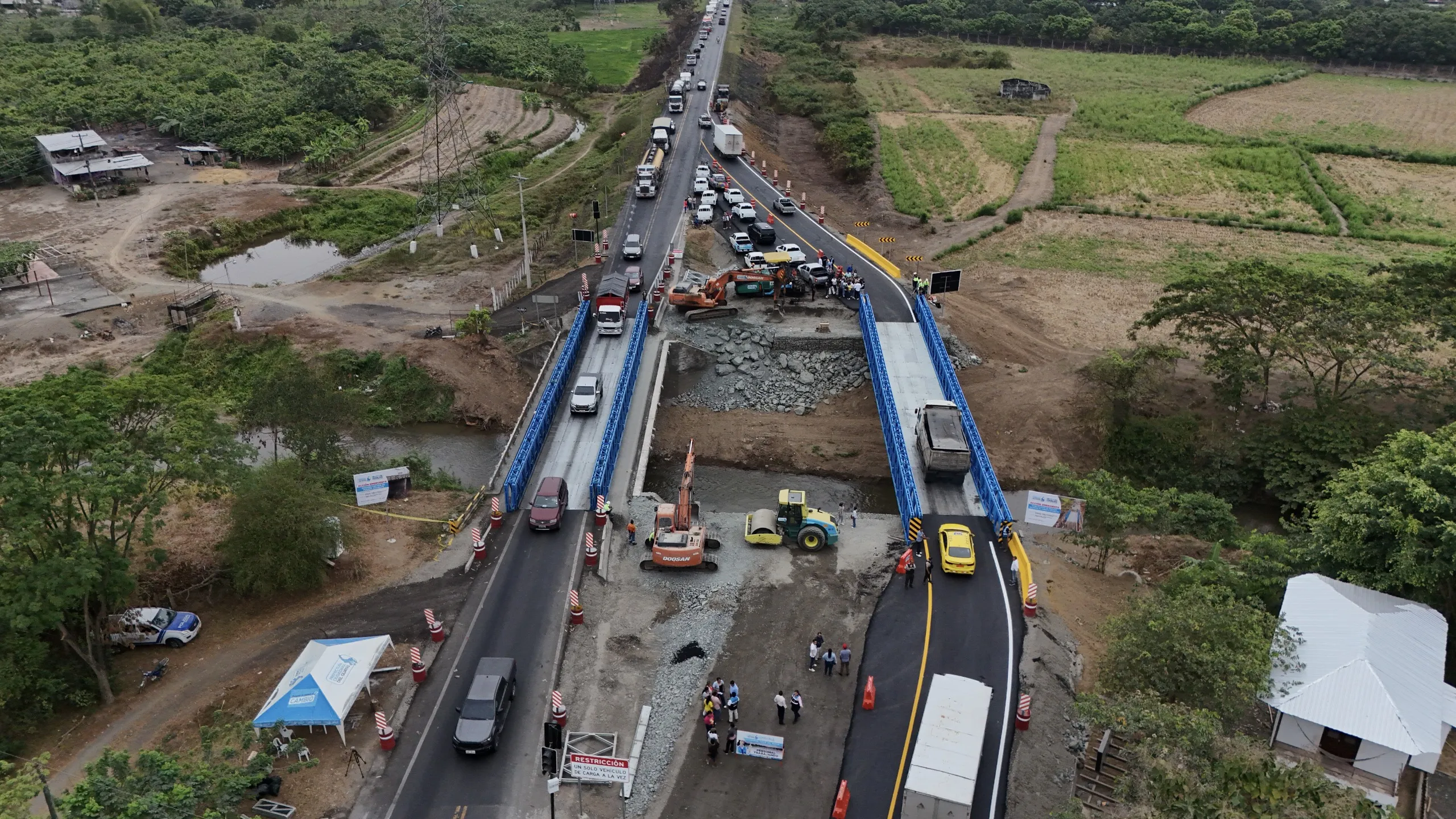 El primer puente provisional entró en operación el 22 de octubre pasado y el segundo se habilitó este 11 de noviembre. La obra representa una inversión aproximada de $600.000 y responde a la emergencia generada luego de los daños ocasionados por la detonación de artefactos explosivos que afectaron la estructura original del puente Churute, el pasado 15 de octubre.