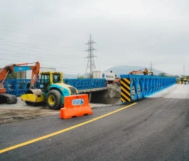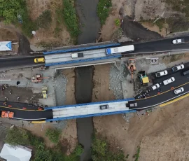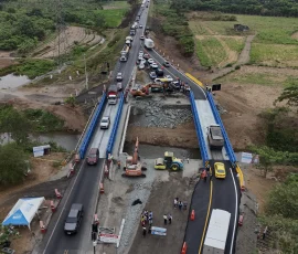 El primer puente provisional entró en operación el 22 de octubre pasado y el segundo se habilitó este 11 de noviembre. La obra representa una inversión aproximada de $600.000 y responde a la emergencia generada luego de los daños ocasionados por la detonación de artefactos explosivos que afectaron la estructura original del puente Churute, el pasado 15 de octubre.
