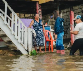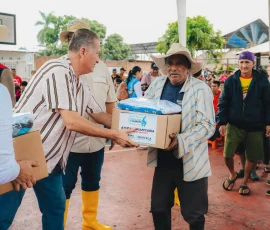 En Lomas de Sargentillo, otro punto de atención, la ayuda humanitaria llegó al recinto Las Cañas, donde más de 300 familias recibieron alimentos, sábanas y toldos antimosquitos para enfrentar los efectos de las inundaciones. Entre ellas está Adriana Mosquera, quien espera un bebé y recibió el kit con emoción. “Como yo estoy embarazada, el kit es de gran ayuda”, comentó mientras ya planifica cómo aprovechar los alimentos para nutrirse durante estos días difíciles.