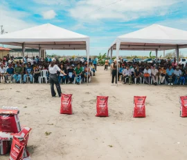 En el marco de su agenda en Playas, la Prefecta Aguiñaga también entregó 500 fundas de semilla certificada de maíz a pequeños agricultores, una inversión superior a $100.000 destinada a fortalecer la productividad y la sostenibilidad del sector rural.