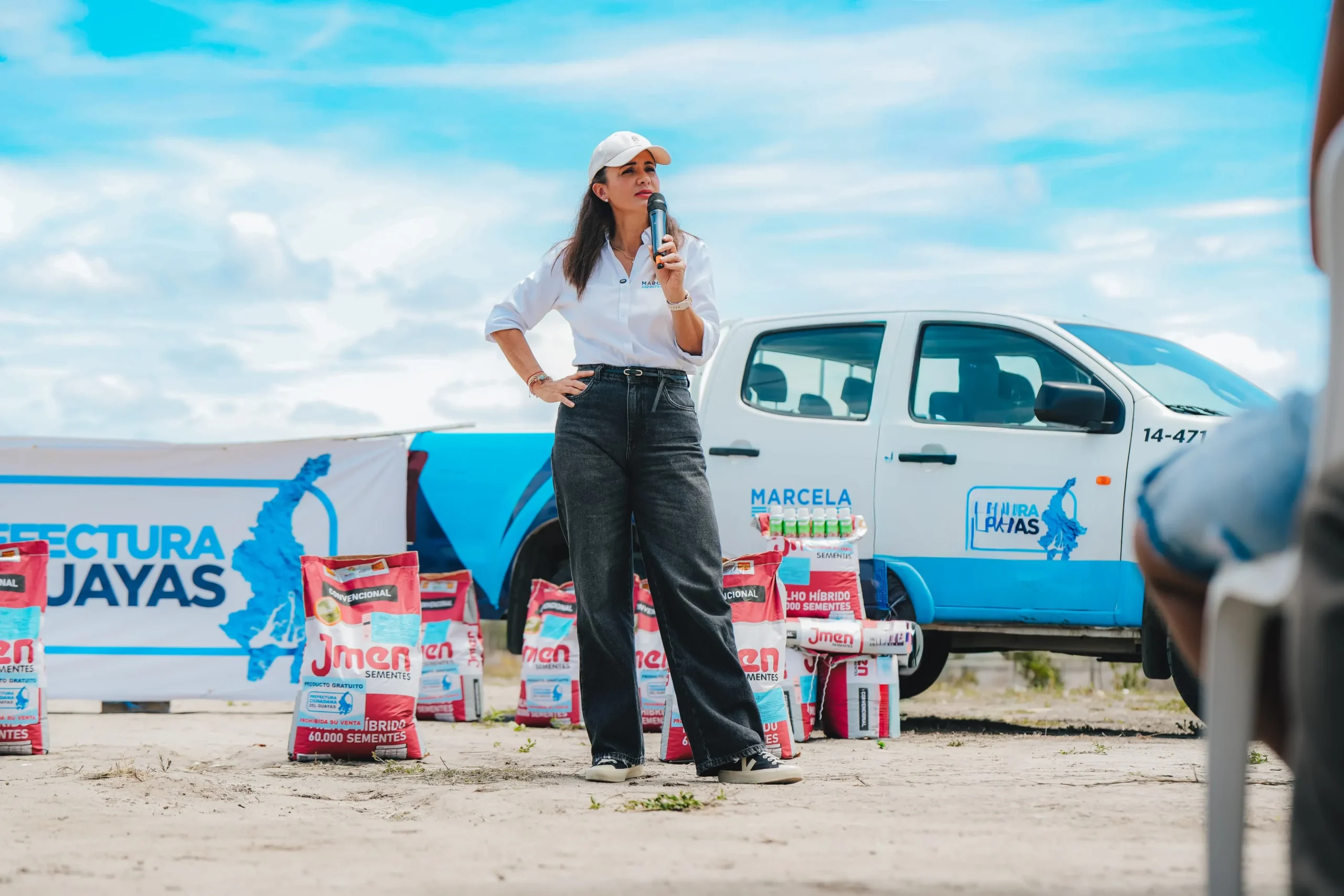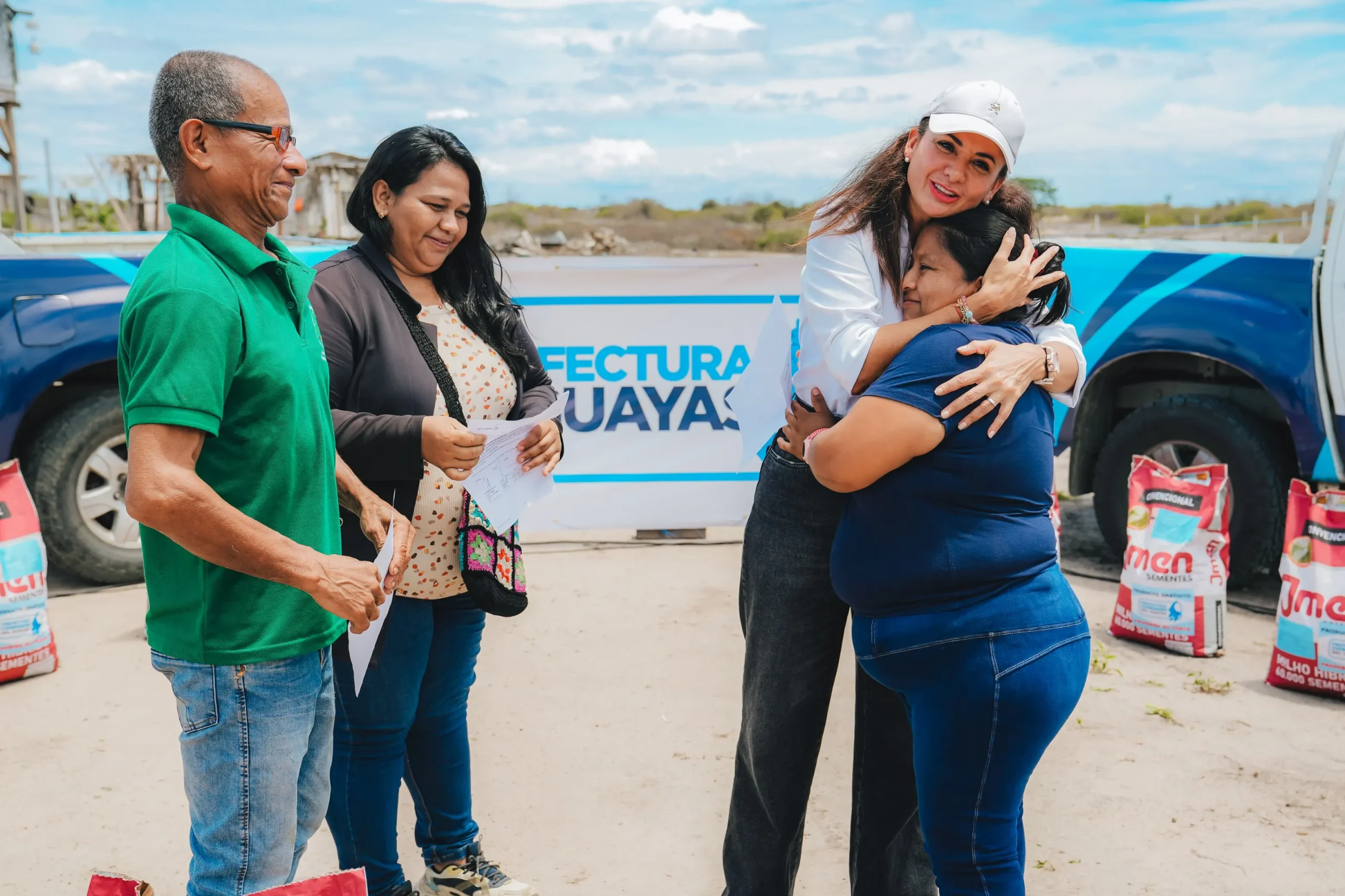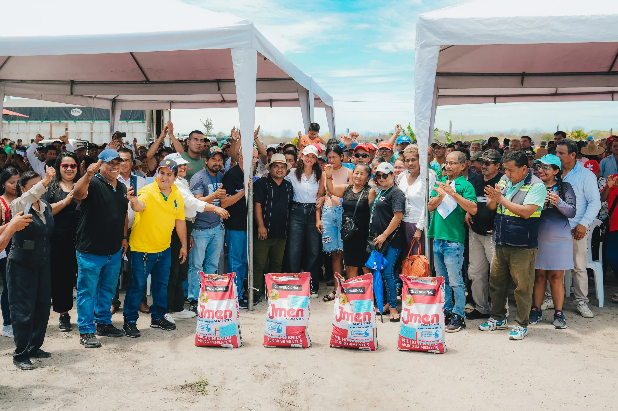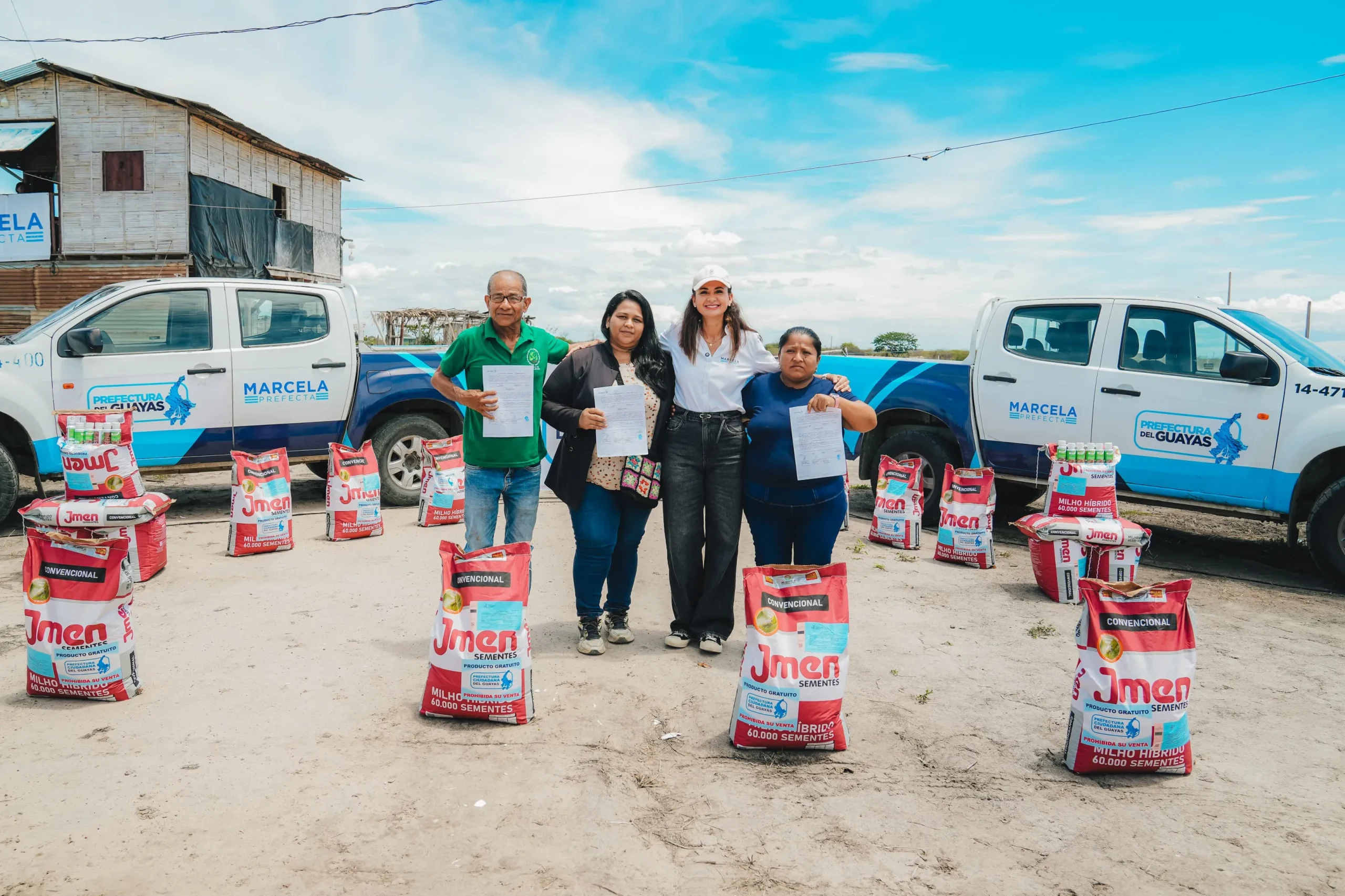 En el marco de su agenda en Playas, la Prefecta Aguiñaga también entregó 500 fundas de semilla certificada de maíz a pequeños agricultores, una inversión superior a $100.000 destinada a fortalecer la productividad y la sostenibilidad del sector rural.