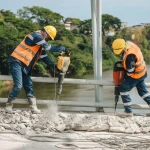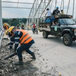 A lo largo de los 152 metros de longitud del puente de Balzar, sobre el río Daule, cuadrillas de obreros ejecutan trabajos preliminares, como parte del reforzamiento estructural emergente que realiza la Prefectura Ciudadana del Guayas.