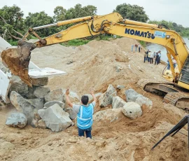 El viceprefecto Carlos Serrano recorrió la parroquia General Vernaza, en el cantón Salitre, para verificar los trabajos que lleva adelante la Prefectura Ciudadana del Guayas en el recinto La Providencia, donde se refuerza la ribera del río Mastrantal con el fin de proteger a las comunidades agrícolas del sector.