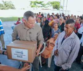 Frente a esta realidad, el viceprefecto del Guayas, Carlos Serrano, acompañó la jornada de asistencia realizada en el Polideportivo de la Cabecera Cantonal, que permitió la distribución de 158 kits de ayuda humanitaria, compuestos por raciones alimenticias no perecibles.