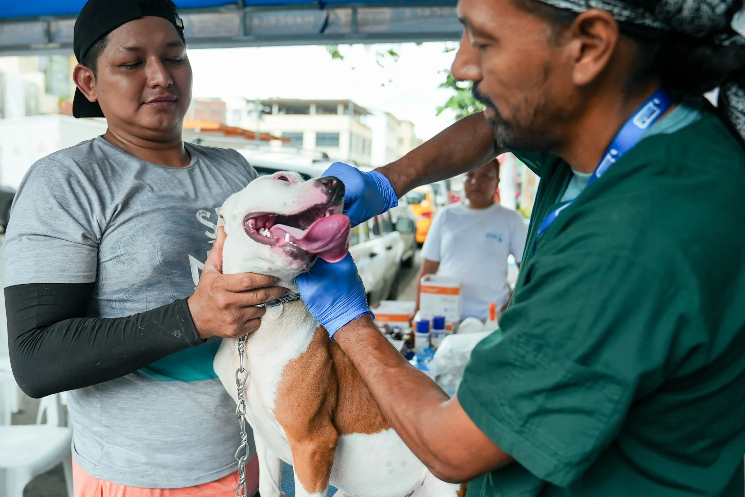 Las mascotas de las familias afectadas por la emergencia, también reciben atención completamente gratuita. En este caso, la brigada veterinaria gestiona cuadros con afecciones respiratorias y oculares, producto del humo y la contaminación ambiental registrada en la zona.