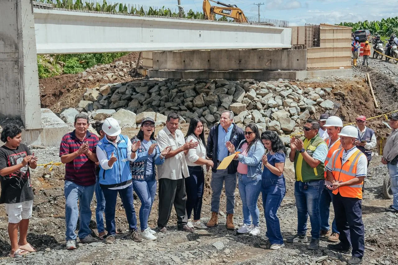 En Simón Bolívar, constató la rehabilitación integral de 9,17 kilómetros de la vía hacia Lorenzo de Garaicoa, que incluye la construcción de un puente nuevo de hormigón armado sobre un afluente del río Los Amarillos. La obra, financiada por la CAF (Banco de Desarrollo de América Latina y el Caribe), contempla una inversión de USD 5,7 millones, registra más del 60 % de avance físico y tiene como fecha prevista de culminación el 13 de marzo de 2026, conforme al plazo contractual de 180 días más una prórroga de 30 días.
