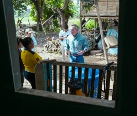 En el recinto María Angélica, del cantón Salitre, el viceprefecto del Guayas, Carlos Serrano Bonilla, encabezó la inspección y entrega casa por casa de kits de Agua Segura a 47 familias que habitan en viviendas de caña ubicadas al pie del río, en una zona de difícil acceso a la que solo se puede llegar cruzando por vía fluvial.
