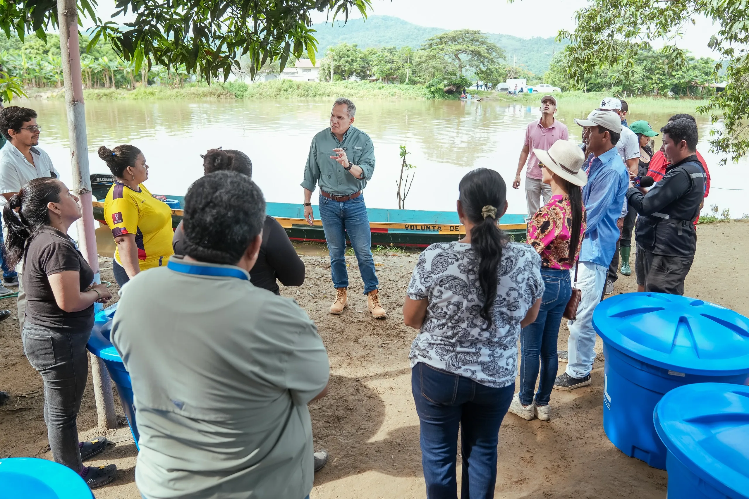 En el recinto María Angélica, del cantón Salitre, el viceprefecto del Guayas, Carlos Serrano Bonilla, encabezó la inspección y entrega casa por casa de kits de Agua Segura a 47 familias que habitan en viviendas de caña ubicadas al pie del río, en una zona de difícil acceso a la que solo se puede llegar cruzando por vía fluvial.