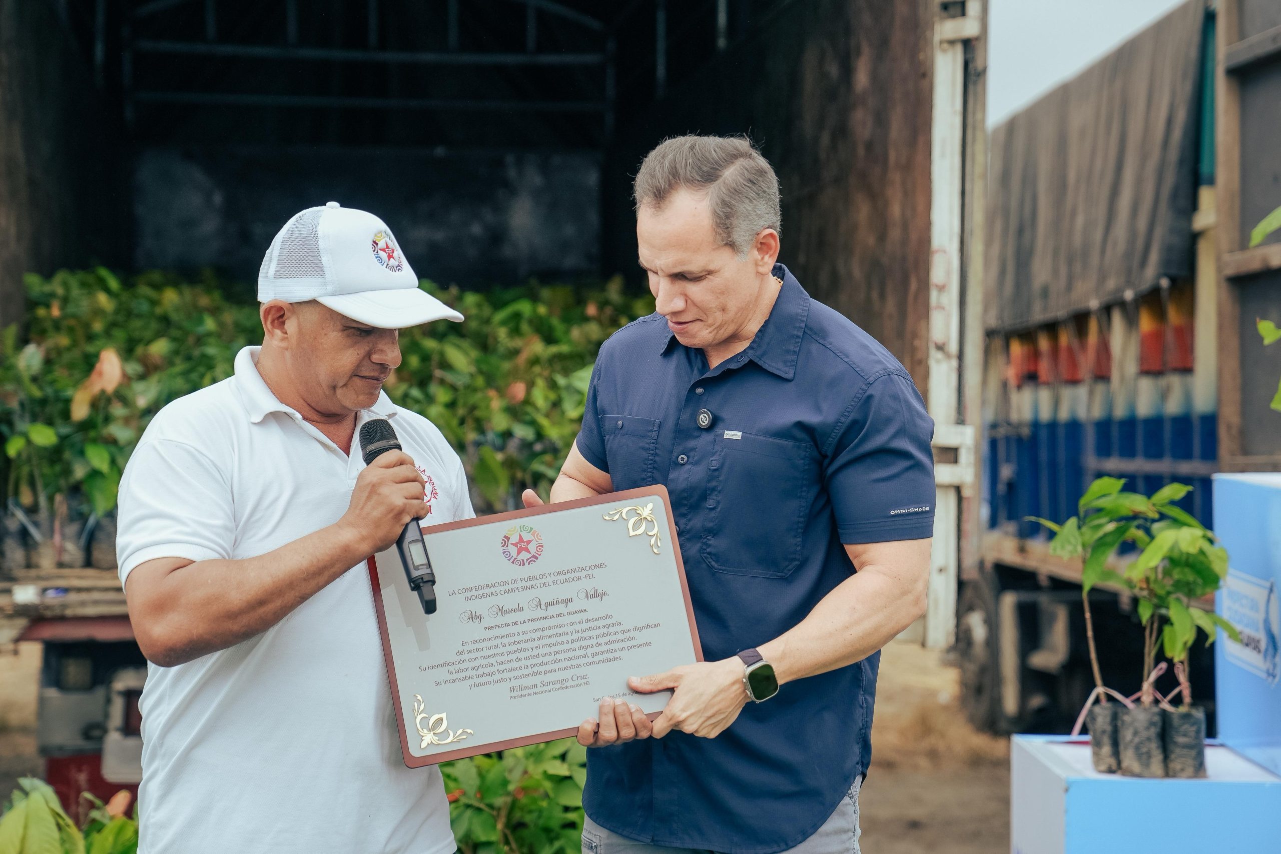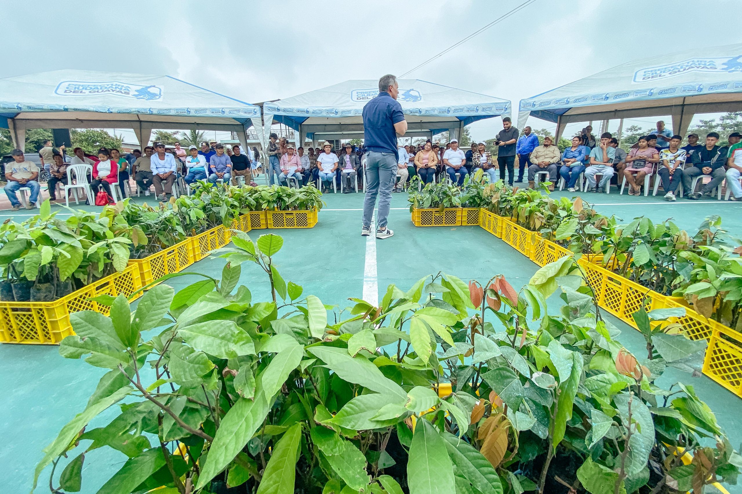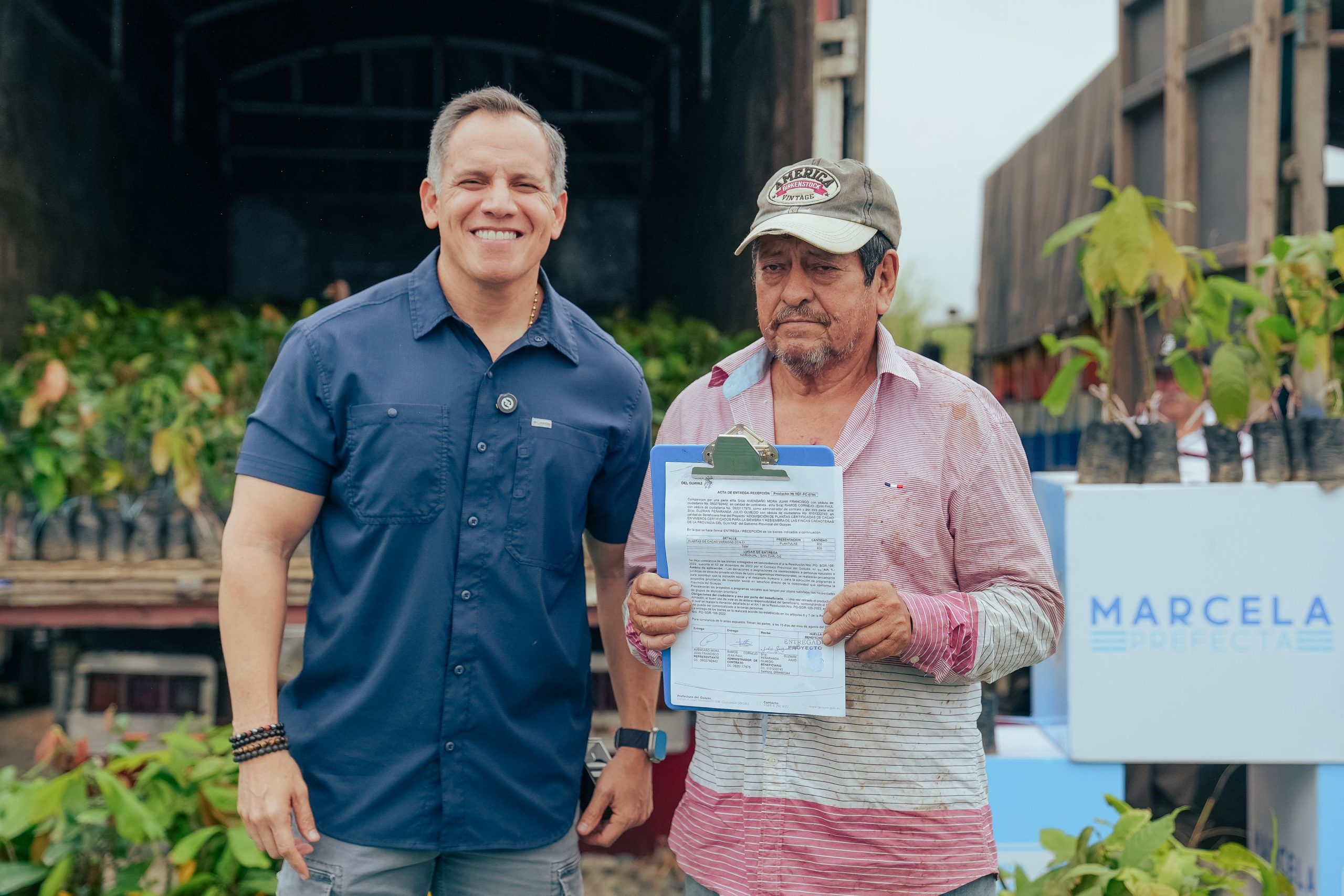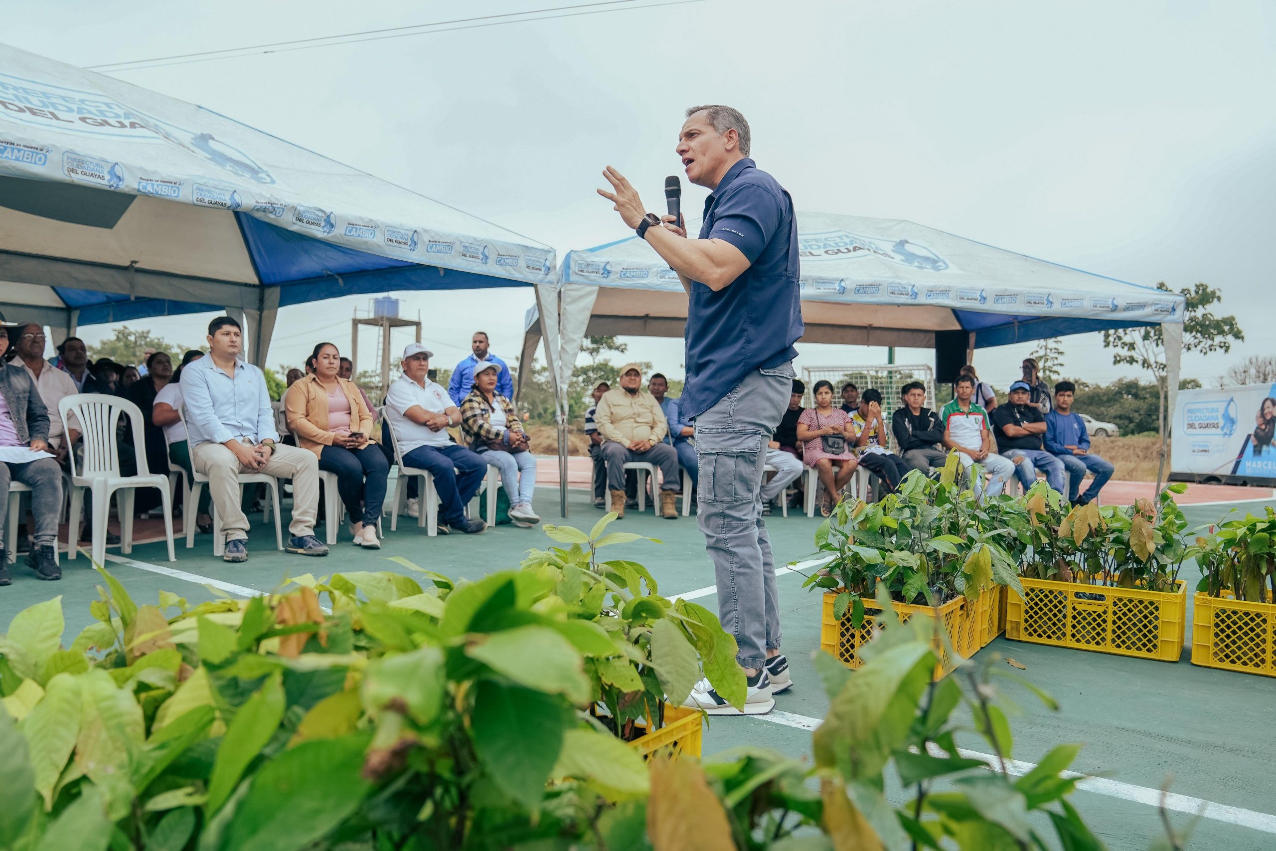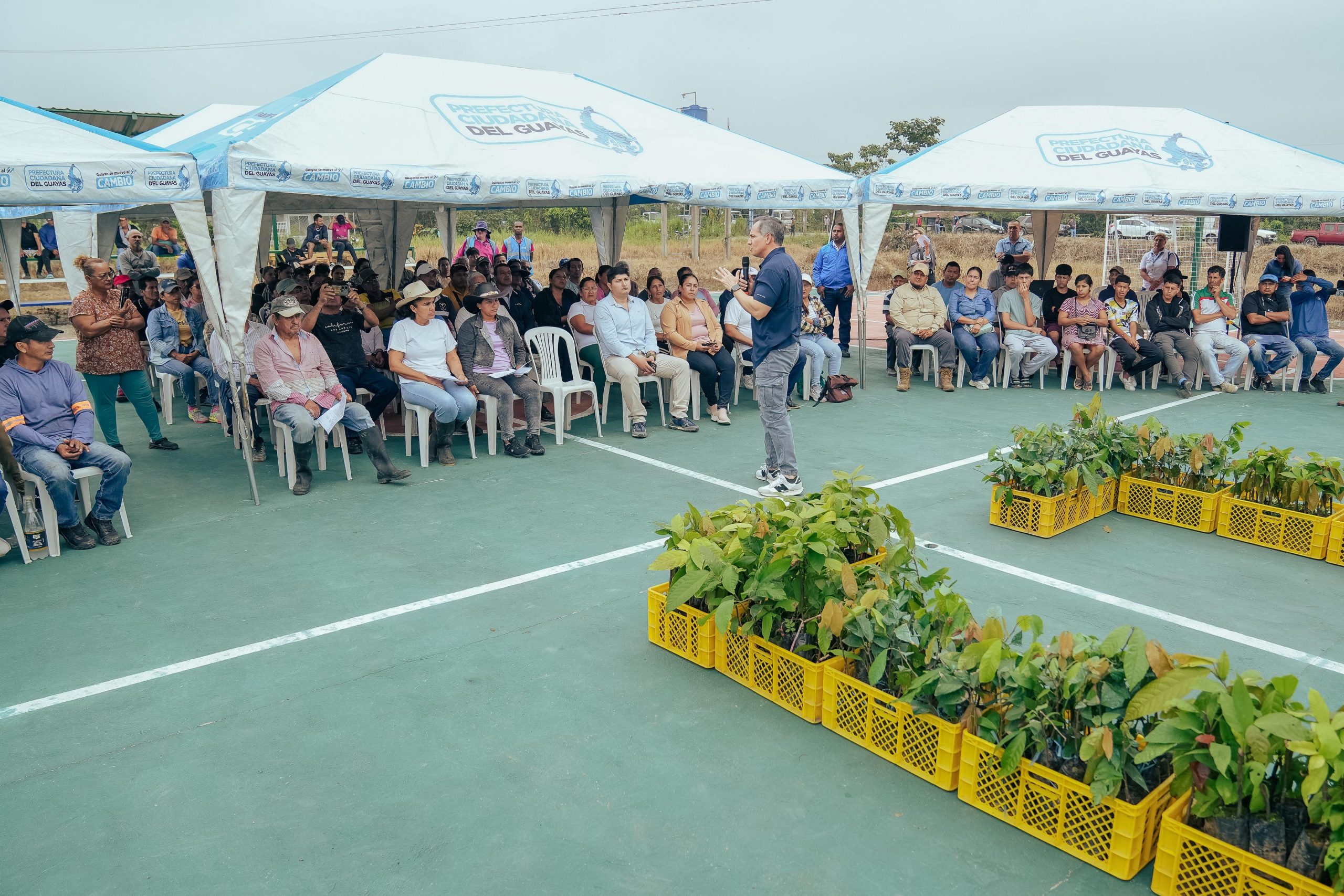 65.000 plántulas de cacao benefician al recinto La Indiana, en entrega liderada por el viceprefecto Carlos Serrano