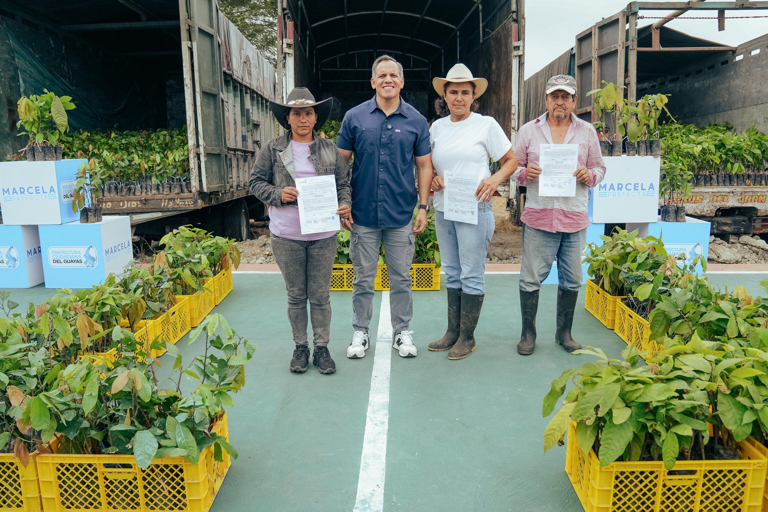 “Para nosotros estas plántulas son una oportunidad de mejorar nuestras cosechas y asegurar un futuro seguro para nuestras familias. Agradecemos a la prefecta Marcela Aguiñaga y al viceprefecto Carlos Serrano, por pensar en los pequeños productores”, señaló Carmen Abigail beneficiaria perteneciente al Grupo de Agricultores Independientes del recinto La Indiana.