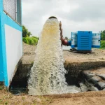 Posteriormente, la Prefecta se trasladó al recinto Juan Bautista Aguirre, en Daule, para verificar la operatividad de la bomba móvil de gran caudal, que se instaló a beneficio de, aproximadamente, 300 familias y el riego de 1.500 hectáreas de cultivo de arroz.