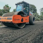 En este sector, la institución despliega un equipo de compactación completo y ocho volquetas, que permiten avanzar con la reconformación de la superficie de rodadura y la colocación de 20 cm de espesor de material de río en la vía El Rosario – Los Amarillos – Nueva Ilusión, que cuenta con una longitud de 7,97 kilómetros y 7 metros de ancho.