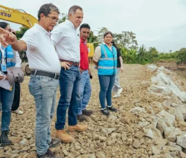 El viceprefecto del Guayas, Carlos Serrano, recorrió el recinto Samborondón para constatar el avance de la obra, que actualmente registra un 95 % de ejecución.