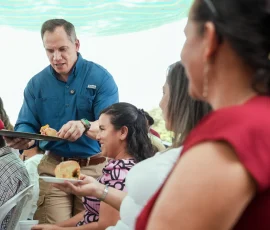 Como segundo punto de la agenda, el viceprefecto se trasladó al cantón Salitre, donde mantuvo un encuentro con aproximadamente 70 dirigentes de las comunidades Bocana de Abajo, Julia María, Chacanceo, La Piedad y El Tope, entre otros y así como del cantón Samborondón los recintos La Delicia, Paula León y La Patricia. En este espacio, reafirmó el compromiso institucional de la Prefectura con el desarrollo de la provincia e invitó a los asistentes a participar en la presentación de los resultados del Censo Agropecuario, que se realizará el próximo sábado 17 de enero, en Daule, a cargo de la prefecta Marcela Aguiñaga. El encuentro concluyó compartiendo la Rosca de Reyes DELALMA, elaborada por mujeres emprendedoras de la Manzana de Cuidado de Monte Sinaí, como un gesto que simbolizó el trabajo colectivo y el impulso a la economía popular y solidaria.