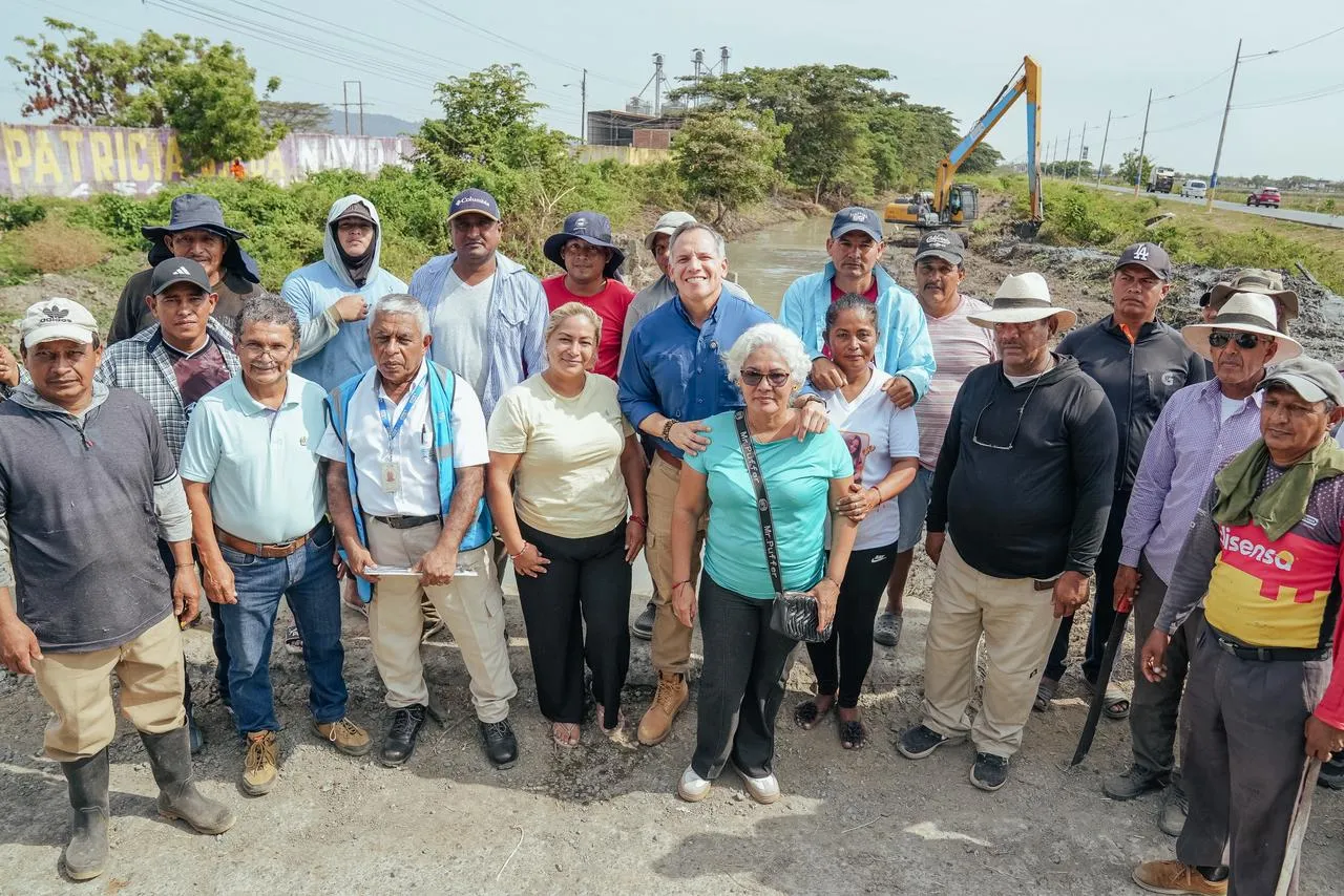 Carlos Serrano supervisó trabajos de limpieza y desazolve de canal en Tarifa y encabezó un encuentro con dirigentes rurales en Salitre.