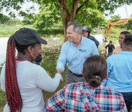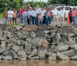 La jornada empezó en la parroquia Mariscal Sucre, cantón Milagro, donde la autoridad provincial verificó el reforzamiento con roca en un tramo de 70 metros de la ribera del río Milagro, una intervención destinada a contener el aumento del caudal y evitar afectaciones a viviendas, cultivos y pequeños negocios del centro poblado.