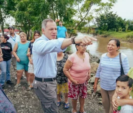 El prefecto del Guayas (s), Carlos Serrano, recorrió la parroquia Mariscal Sucre y la cabecera cantonal de Milagro, en el sector La Ladrillera, para inspeccionar los trabajos que ejecuta la Prefectura y reducir riesgos en las zonas cercanas al afluente.