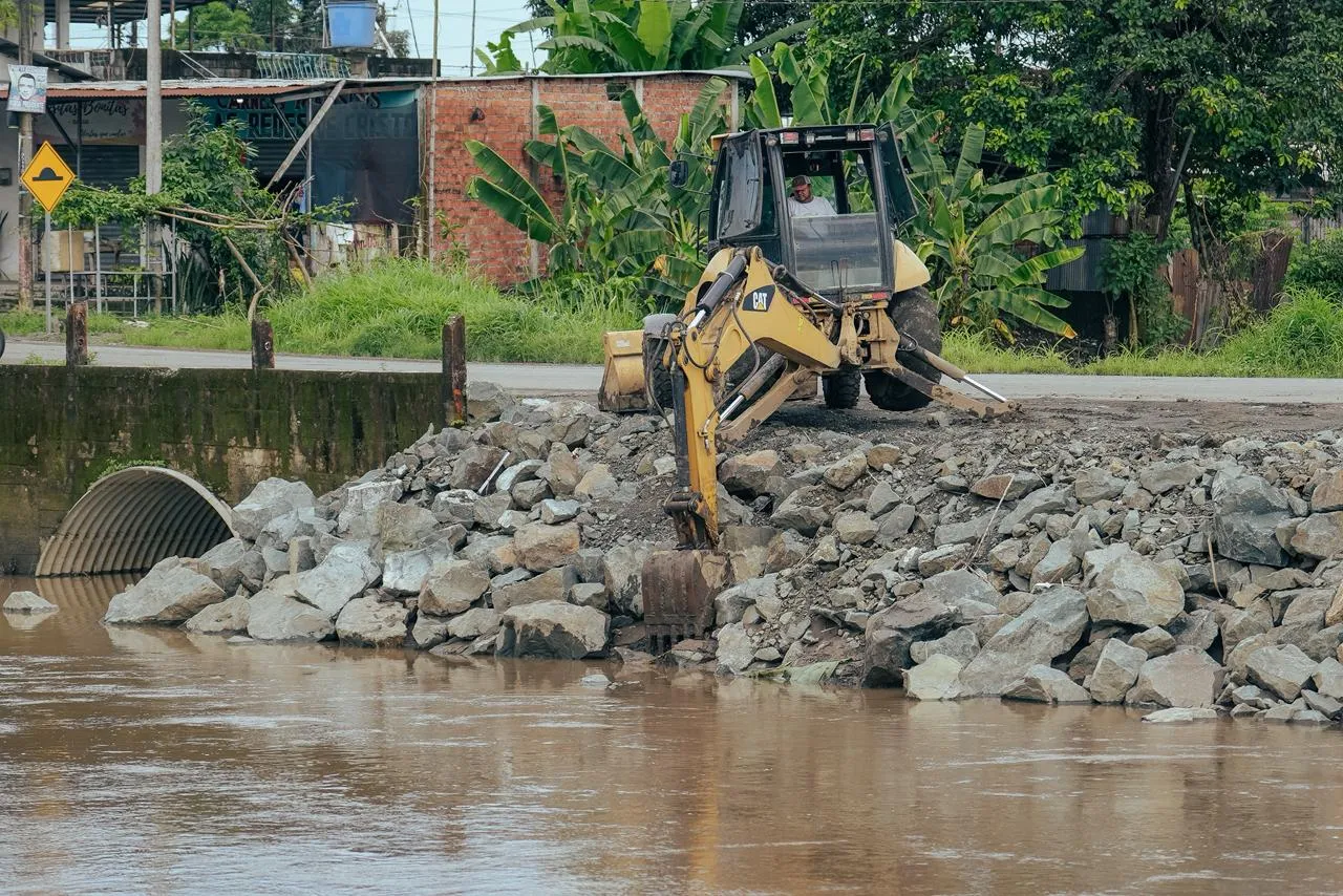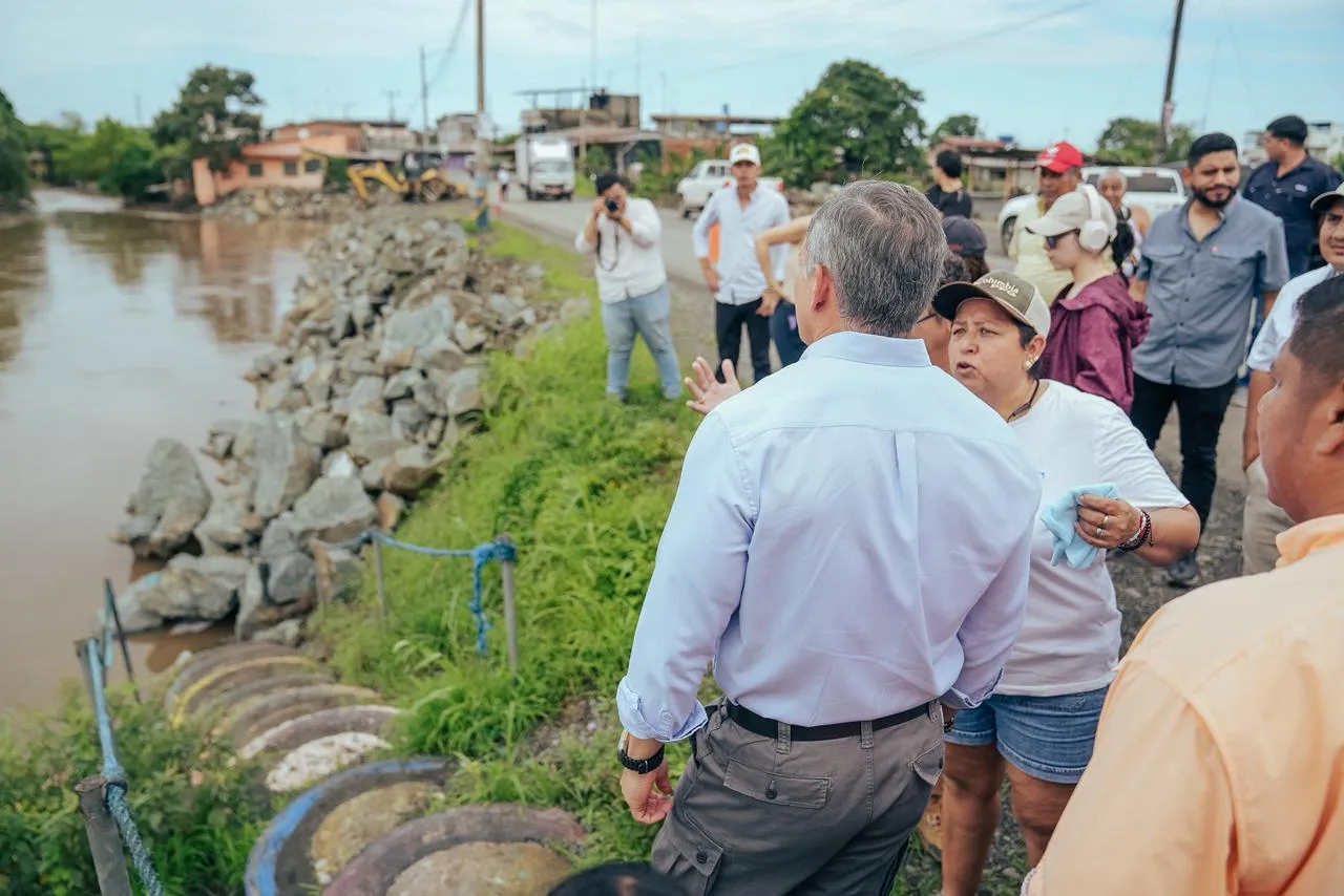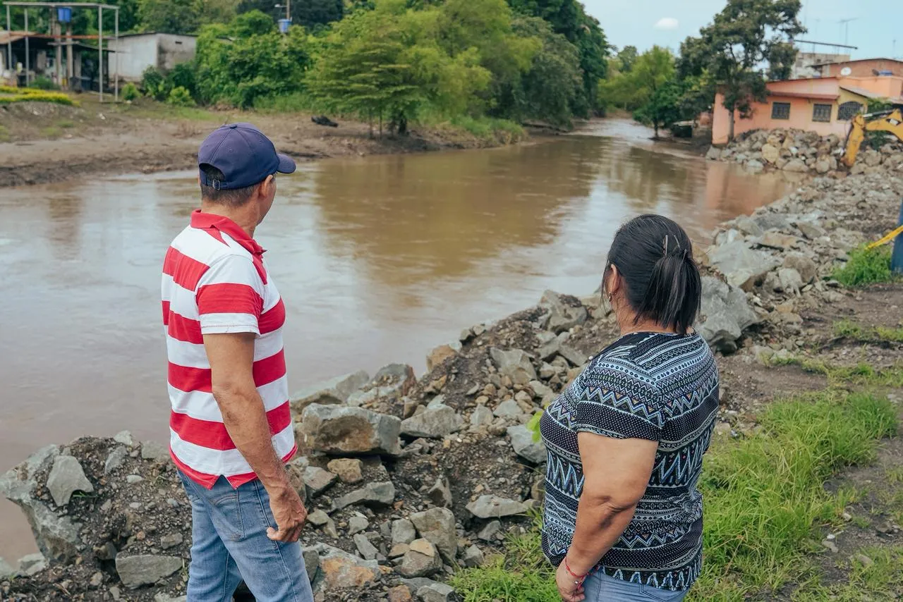 La jornada empezó en la parroquia Mariscal Sucre, cantón Milagro, donde la autoridad provincial verificó el reforzamiento con roca en un tramo de 70 metros de la ribera del río Milagro, una intervención destinada a contener el aumento del caudal y evitar afectaciones a viviendas, cultivos y pequeños negocios del centro poblado.