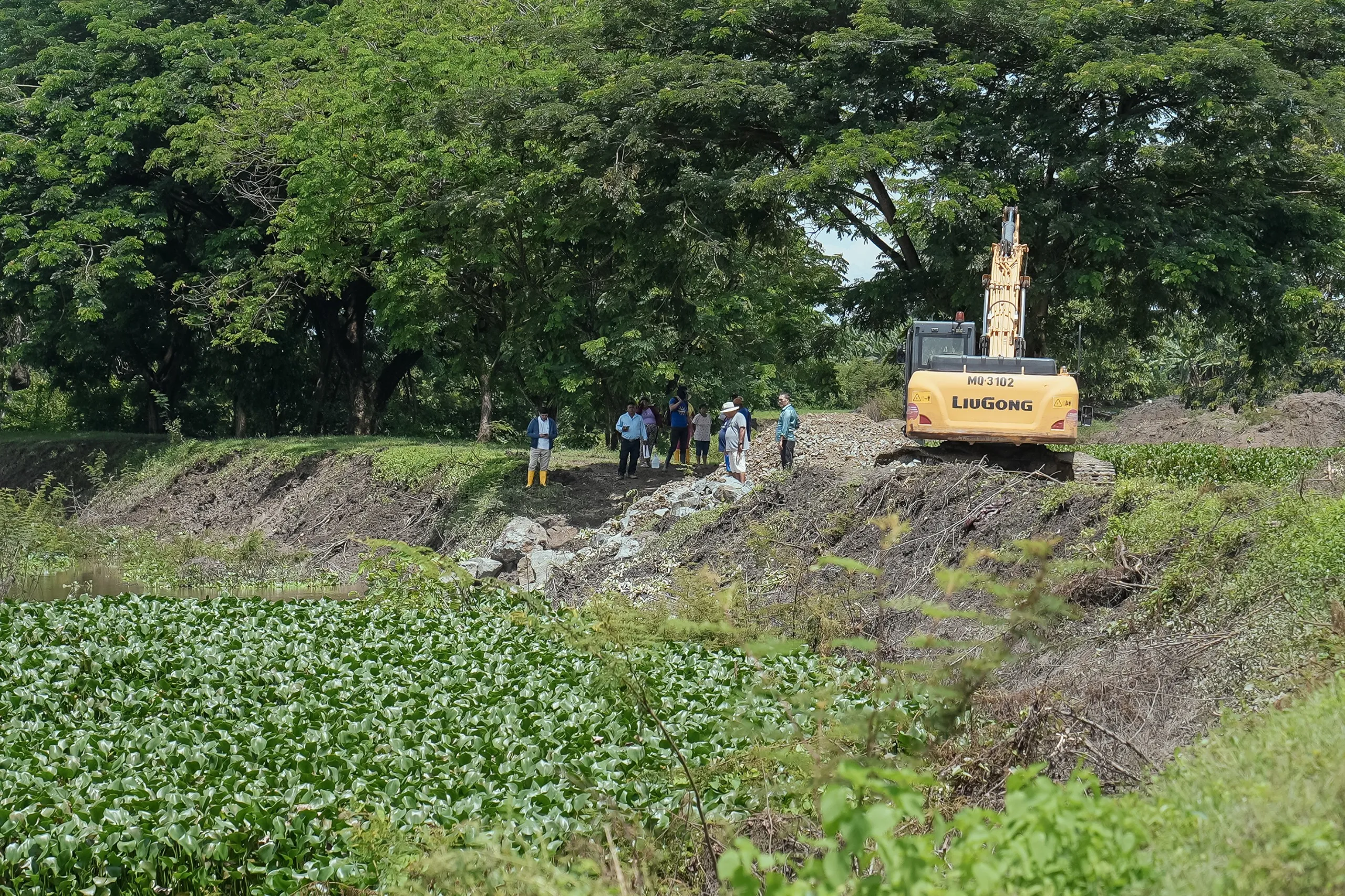 Posteriormente, el recorrido continuó en el sector La Ladrillera, junto al estero Berlín, donde la Prefectura del Guayas ejecuta la reconstrucción y mejoramiento del muro con roca en un tramo de 40 metros, con apoyo de una excavadora y seis volquetas, obra que beneficiará a más de 4.000 habitantes de los sectores cercanos.