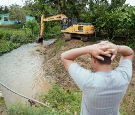 Ante esta situación, maquinaria de la Prefectura, incluida una retroexcavadora, fue desplegada en el lugar para limpiar y encauzar el estero, con el objetivo de evitar que el agua siga afectando a las viviendas y a las áreas productivas.
