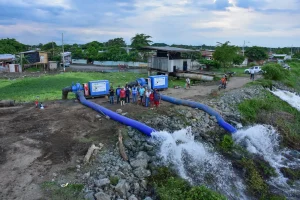 En respuesta a la emergencia presentada por inundaciones en Milagro, como producto de intensas lluvias, técnicos del Gobierno Provincial activaron un sistema de bombeo de alto flujo, en el sector de Bellavista. La intervención dispuesta por la Prefecta Marcela Aguiñaga, tiene como propósito reducir los niveles de agua estancada y facilitar el desfogue hacia cauces naturales, en el cantón afectado.