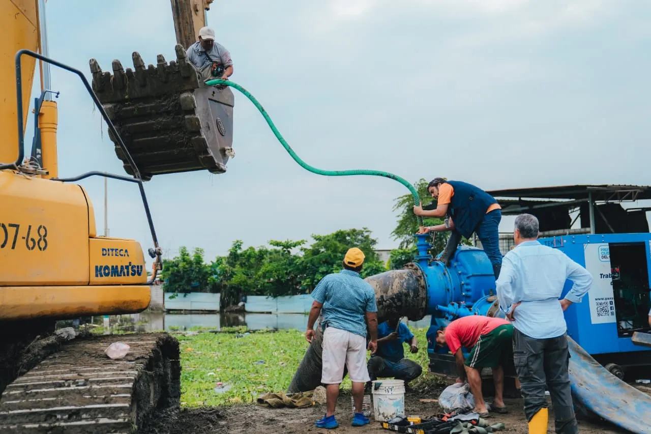 En respuesta a la emergencia presentada por inundaciones en Milagro, como producto de intensas lluvias, técnicos del Gobierno Provincial activaron un sistema de bombeo de alto flujo, en el sector de Bellavista. La intervención dispuesta por la Prefecta Marcela Aguiñaga, tiene como propósito reducir los niveles de agua estancada y facilitar el desfogue hacia cauces naturales, en el cantón afectado.