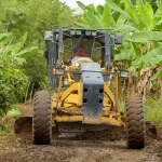 El paso del rodillo retumbaba a lo largo de un kilómetro de la guardarraya en el recinto Saiba de Abajo, en El Empalme, donde la Prefectura Ciudadana del Guayas trabaja en el mantenimiento pétreo que beneficia a 15 familias que se dedican al cultivo de caña, platano, teca, naranjas y mandarinas.