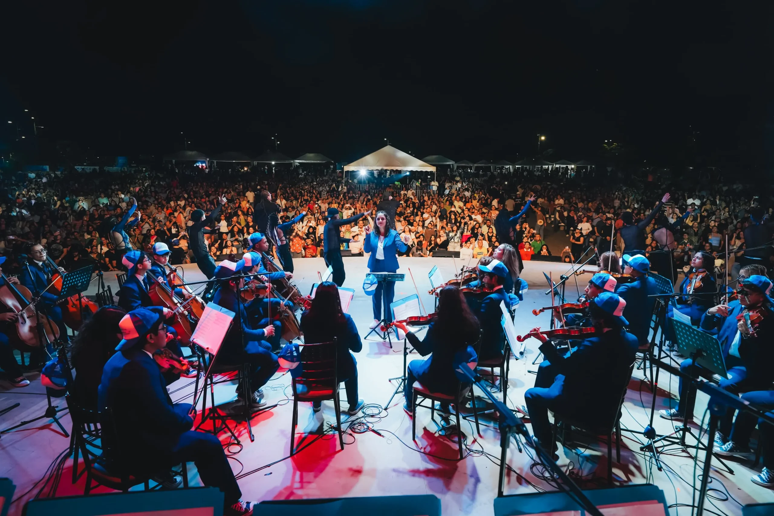 Con la fuerza y el ímpetu de 85 jóvenes en escena y una propuesta musical sin precedentes, el Reguetón Sinfónico Vol. 2 volvió a convertir a la Concha Acústica del Parque Samanes, en Guayaquil, en un escenario de innovación, oportunidades y orgullo provincial. El evento, impulsado y mentalizado por la prefecta Marcela Aguiñaga, a través del programa Guayas Sinfónica, reafirma el compromiso institucional de abrir caminos formativos e impulsar el talento guayasense de niños, niñas y jóvenes mediante la música, la cultura y el arte.