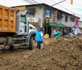 Remoción de sedimentos y trabajos de limpieza se intensifican en Balao, mientras la Prefectura del Guayas levanta información de cultivos afectados por fuertes lluvias