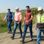 El viceprefecto Carlos Serrano llegó a inspeccionar la obra, en un tramo de 2.9 kilómetros, que conecta con el estero El Rosario.