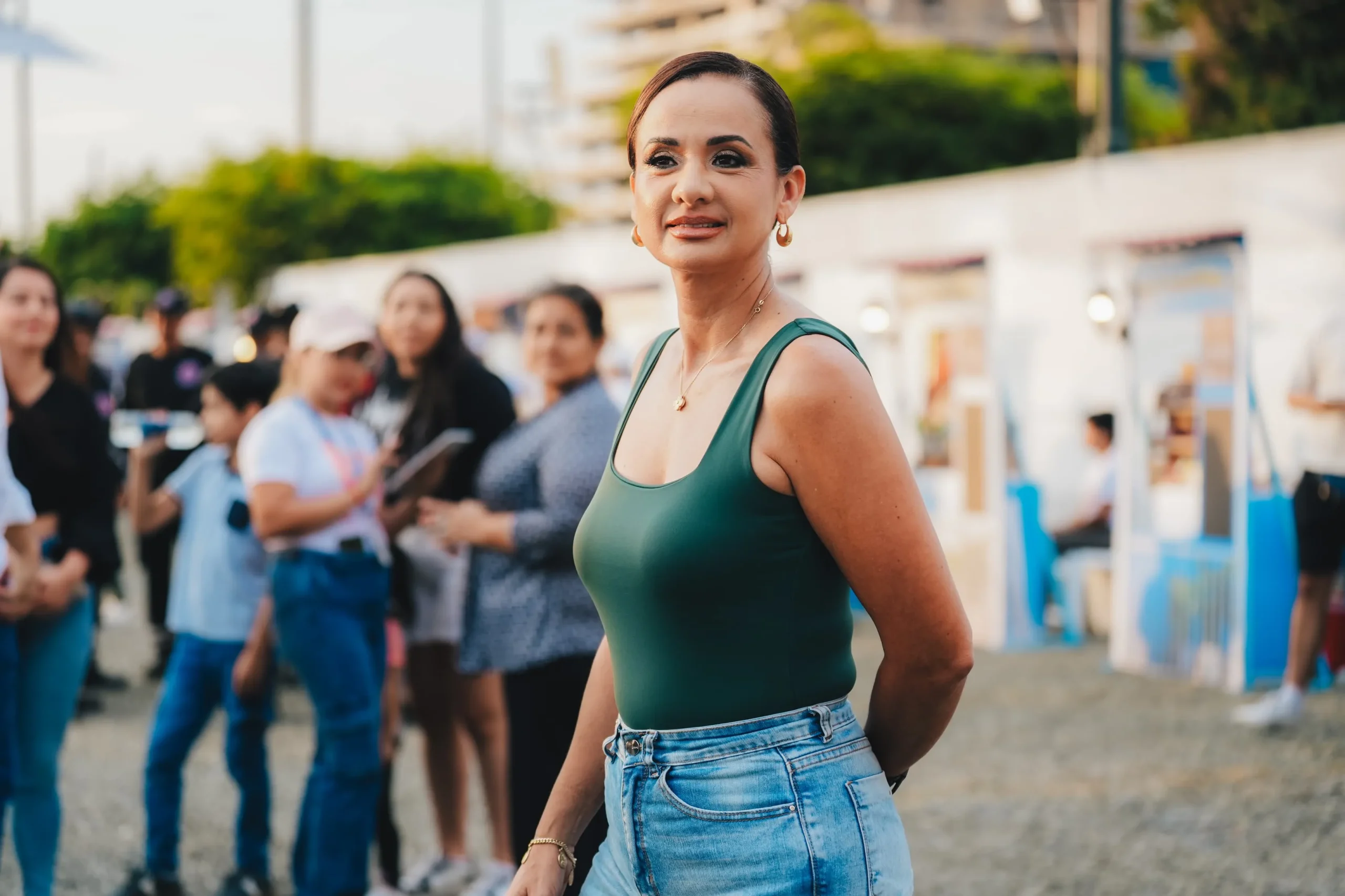 “Emprendimos una campaña que se llama Guayaquiléate, porque decide quedarte… porque la economía se reactiva, generamos empleo, distribuimos y movemos la economía de nuestra ciudad y nuestra provincia”, destacó la prefecta Marcela Aguiñaga al darle la bienvenida a los emprendedores y los asistentes.