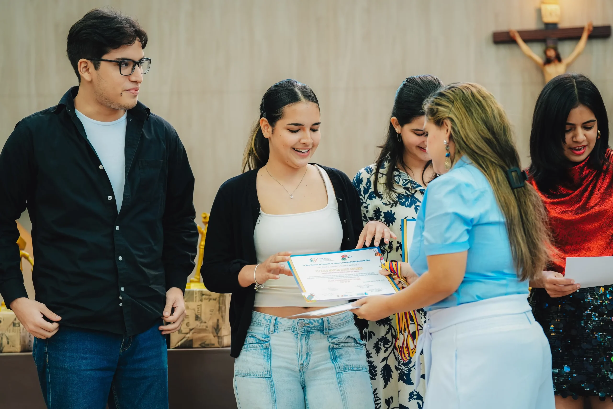 “Traer a la reflexión este tipo de temas es importante y es urgente. Sin duda alguna, los jóvenes tienen que ser actores activos, transformadores… Estamos aquí porque creemos en ustedes, porque sabemos que el talento, la creatividad y los valores son herramientas para construir un presente y un futuro sin violencia, sin drogas, sin ninguna forma que nos deshumanice”, les dijo la prefecta Aguiñaga a los concursantes. Para los estudiantes y docentes participantes de todo el país, el ambiente fue de fiesta. Sebastián Enríquez, docente del Kruger School, felicitó la participación de la Prefectura Ciudadana del Guayas en un tema de repercusión “mundial, que daña la vida… Me parece chévere que le den visión a este tipo de temas y que dejen expresar el arte”.